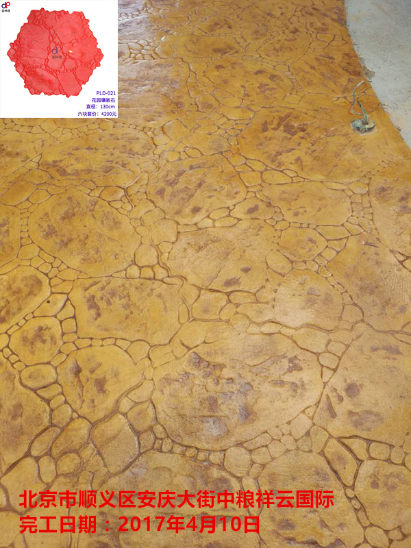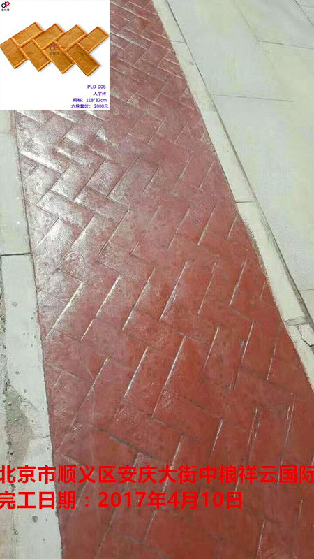 项目名称:北京市顺义区安庆大街中粮祥云国际压模压花地坪工程 项目地址:北京市顺义区安庆大街中粮祥云国际 竣工时间:2017年04月10日 项目规模:中型 供应厂家:普林德工厂